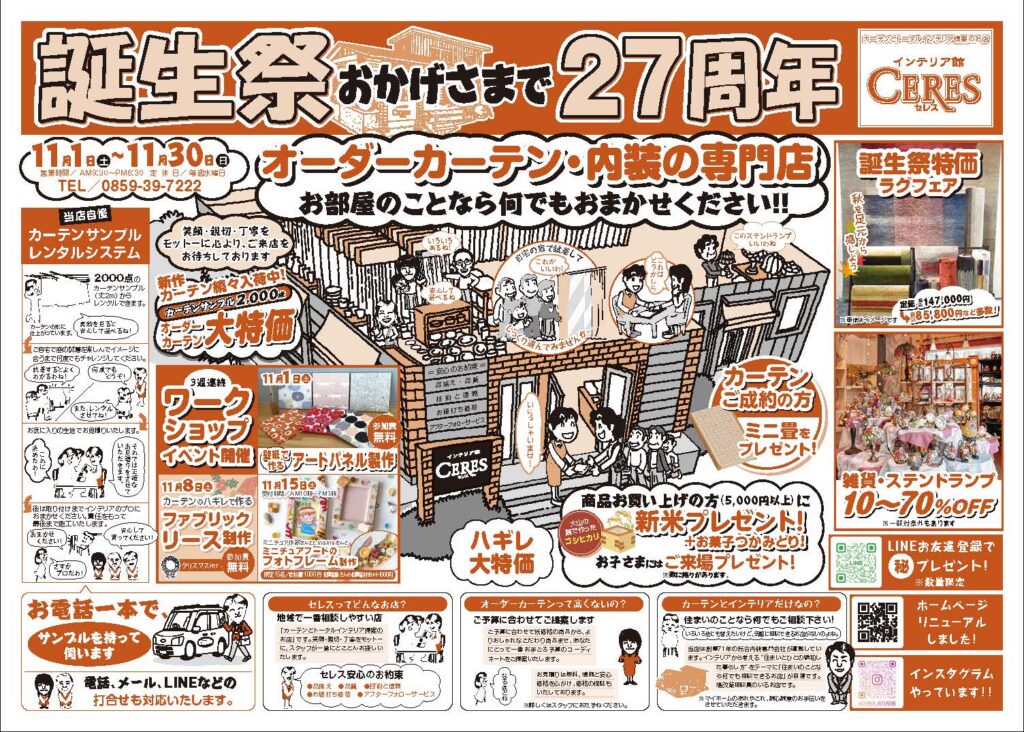 地域密着の内装・オーダーカーテンの専門店「インテリア館セレス」は、おかげさまで27周年を迎えました。