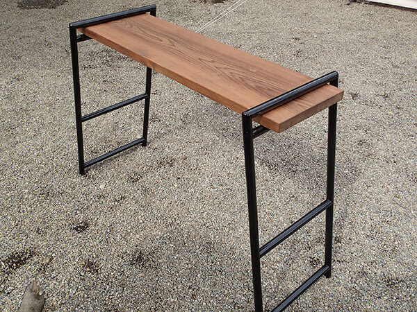 オイルステイン等で塗装した厚さのある板に、メタル製のフレームを通しただけのもの。