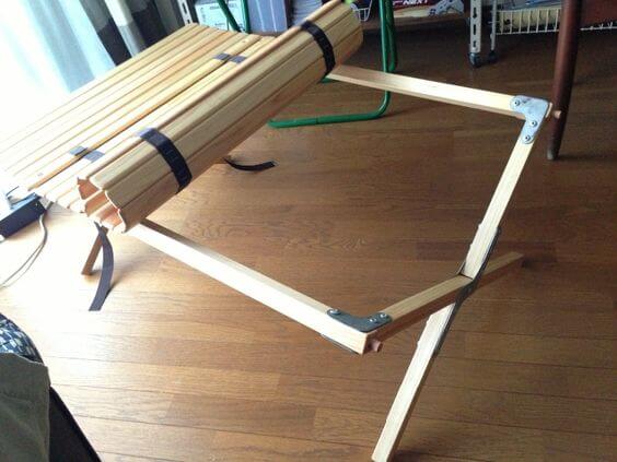 乗せる板をオイルステインで塗装するだけなので簡単。板は「すのこ」を重ねたものを使っても代用できそうです。