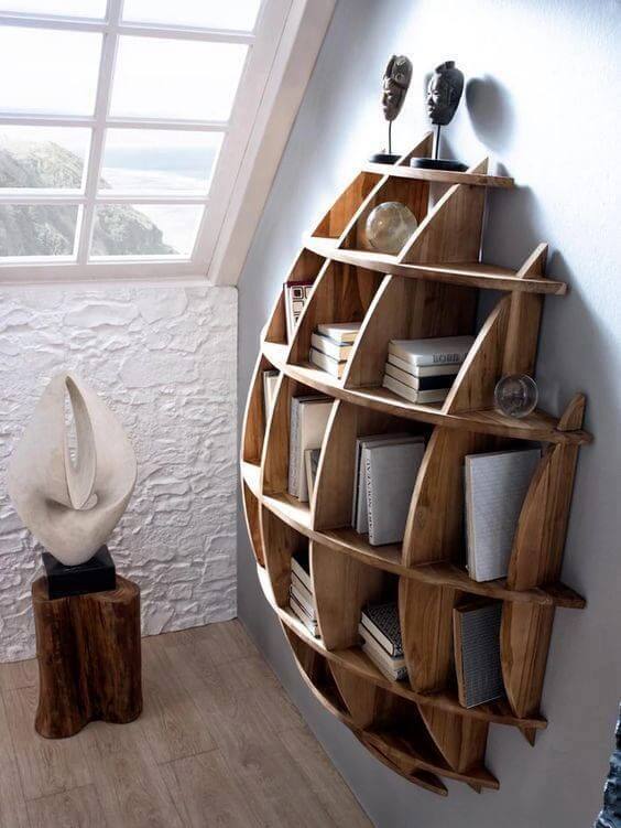 まるで風に揺らめいているいるようなユニークな形をした本棚。他にはないオンリーワンなシェルフに。