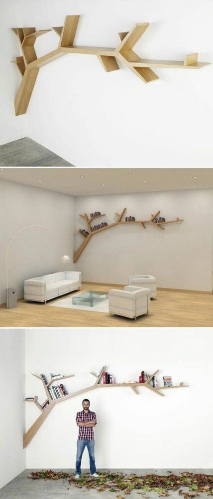 壁の横から木が生えてきているように見えるデザイン性の高いシェルフ。枝の一つ一つが「棚」として機能しています。