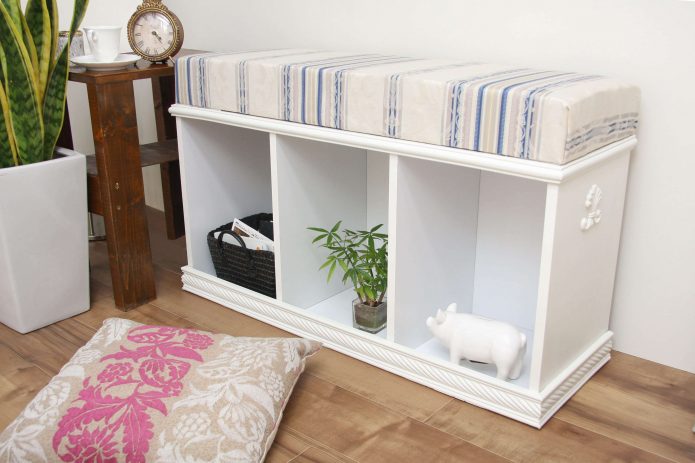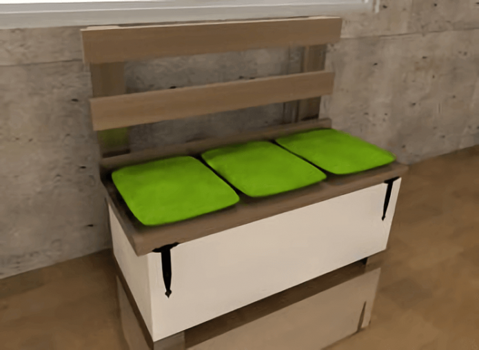 全部で3段のカラーボックスを横向きにして、その上にベンチを作成。