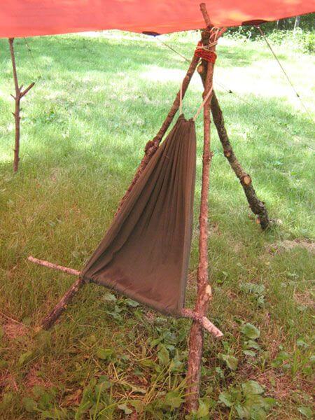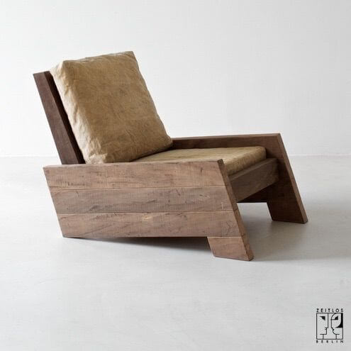 テントのように木の棒と布だけで作りシンプルな椅子。円柱タイプの角材とロープを組み合わせて作れば、ほぼおなじモノが作れますね。