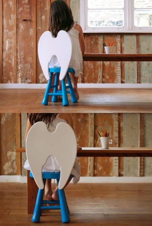 椅子がそのままの状態では何のためについてるか分かりませんが、子供が座ってみると、まるで天使の羽が生えているようなキュートなデザインに。