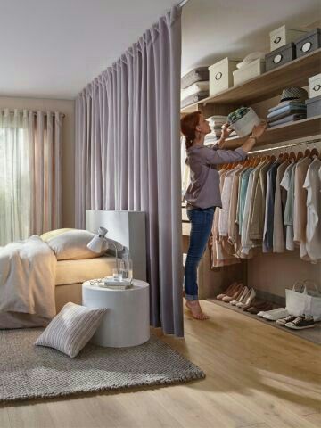 「壁を作るまでの事をするのは面倒…」という場合にはこちらのやり方がおすすめ。天井にカーテンレールを設置して、地面下までのお気に入りのカーテンを吊るすだけでOKで簡単です。