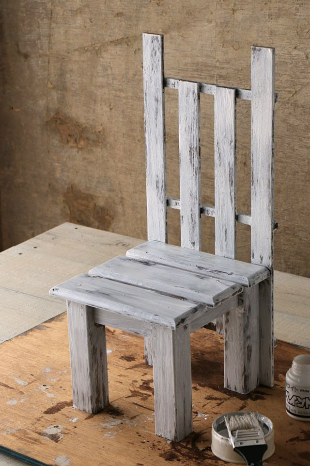 オイルステイン等で茶色の塗装をして乾かしたら、わざとこすれるような感じでざっくりと白色の塗料を塗っていって、シャビーな感じに仕上げています。