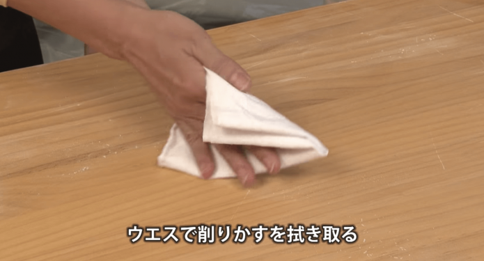ウエス(古タオルや古着等でも)を使って、削って出た表面の汚れをキレイに拭き取ります。