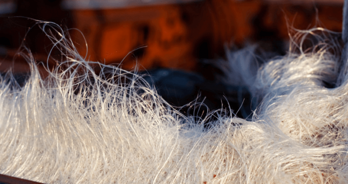 グラスウールとは、リサイクルガラスを高温に熱して溶かし、繊維状にまとめた人工繊維のこと。