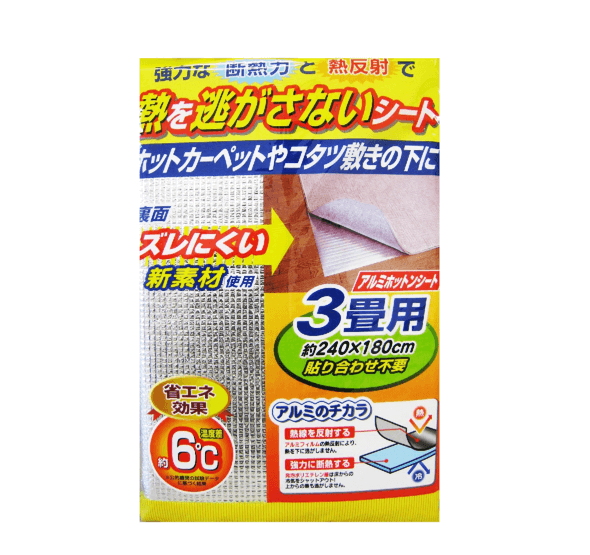 こたつやホットカーペット用の下敷きアルミマット。アルミフィルム&発泡ポリエチレンで、熱を逃さず冷気をシャットアウト。