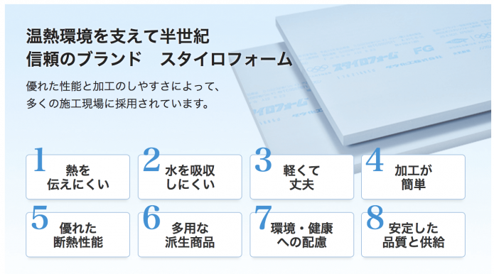 断熱効果のある板として、最もポピュラーで使いやすいのが「スタイロフォーム」と呼ばれるものです。