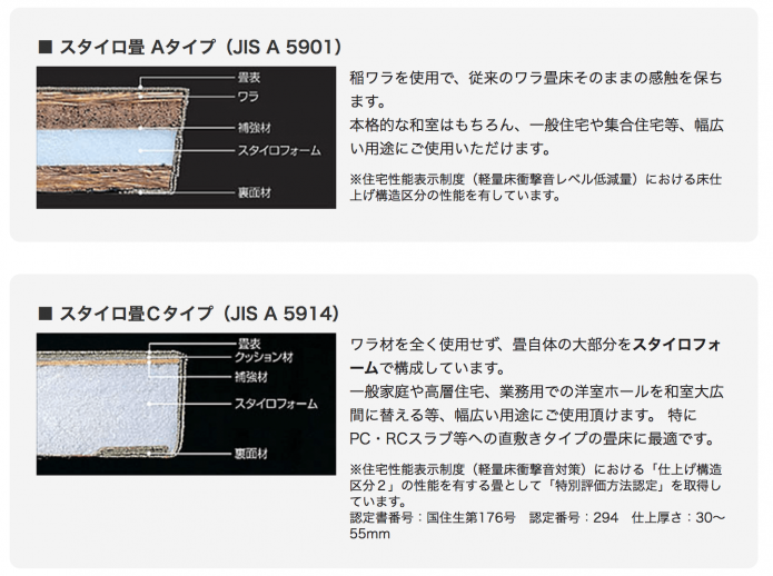 こちらは、床下にスタイロフォームを使うのではなくて、畳そのものの材料に「芯」としてスタイロフォームを使っているので、その断熱効果はかなり強力です。